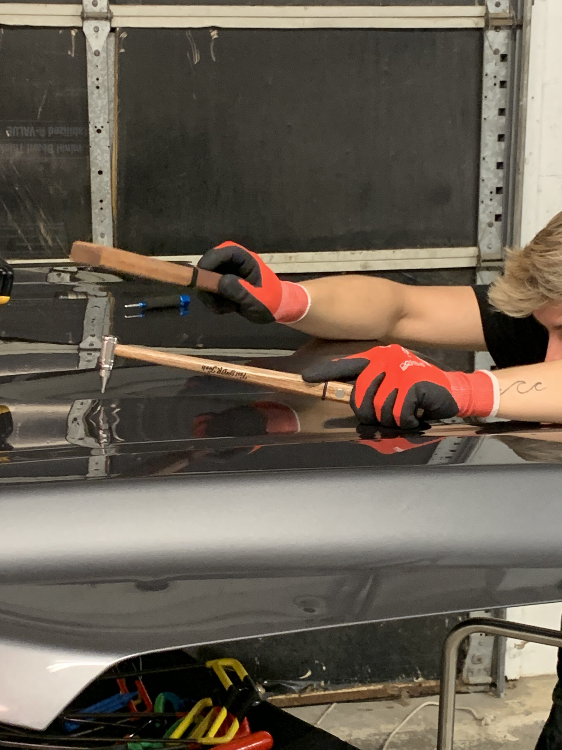 Nearly all hail dents and many other types of dents can be repaired with PDR. If the paint is intact, PDR is the perfect solution. If paint has been damaged, we combine PDR with precision refinishing to restore your vehicle to like-new condition.